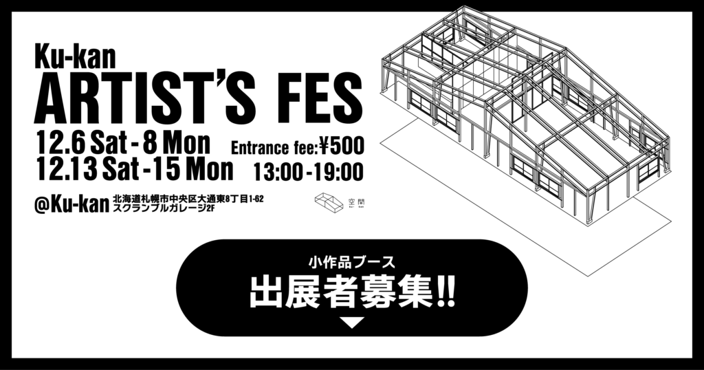 「空間」は、札幌の元工場の2階のスペース。 ギャラリーsalon cojicaの川上大雅とアーティストの大橋鉄郎が運営する。 「持て余すような空間から始まる」展示をコンセプトに、インスタレーションなどの空間芸術を中心とした展覧会を企画していく。